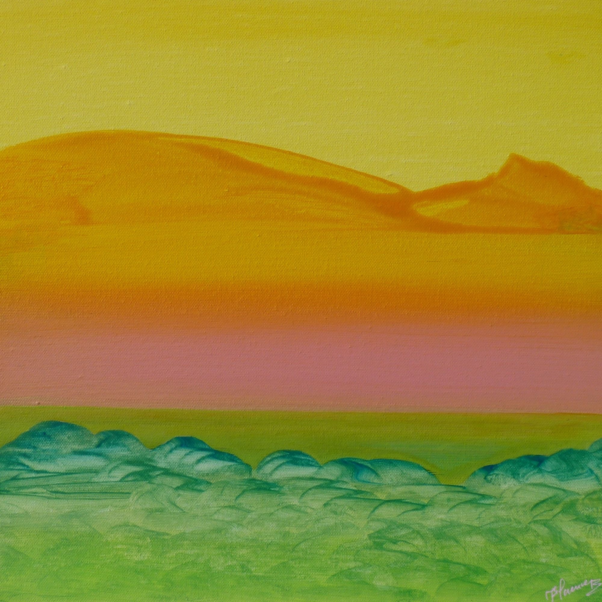 Lors d'une méditation sur le sentiment d'union à tous les êtres humains en prière, j'ai eu cette vision. Chaque paillette représente un être humain en sadhana et l'ensemble forme une multitude rayonnante et vibrante autour de la Terre.