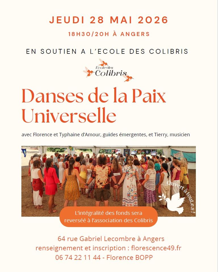 Avec plusieurs guides émergentes en Danses de la Paix Universelle, nous avons eu l’idée d’organiser une soirée de soutien à l’initiative de l’Ecole des Colibris car là, ils ont besoin de nous !