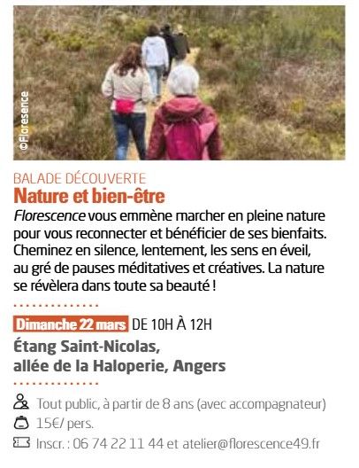 Je vous emmène marcher en pleine nature, à l'étang Saint-Nicolas, pour vous reconnecter et bénéficier de ses bienfaits. Cheminez en silence, dans la lenteur, les sens en éveil, au gré de pauses méditative et créative. La nature vous révèlera peut-être sa beauté !