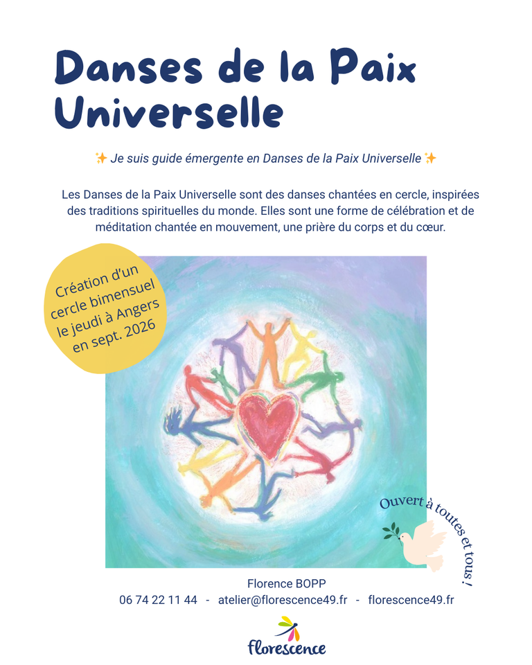 Les Danses de la Paix Universelle sont des danses chantées en cercle, inspirées des traditions spirituelles du monde entier. Elles sont une forme de célébration et de méditation active par le chant et le mouvement, une prière du corps et du cœur.