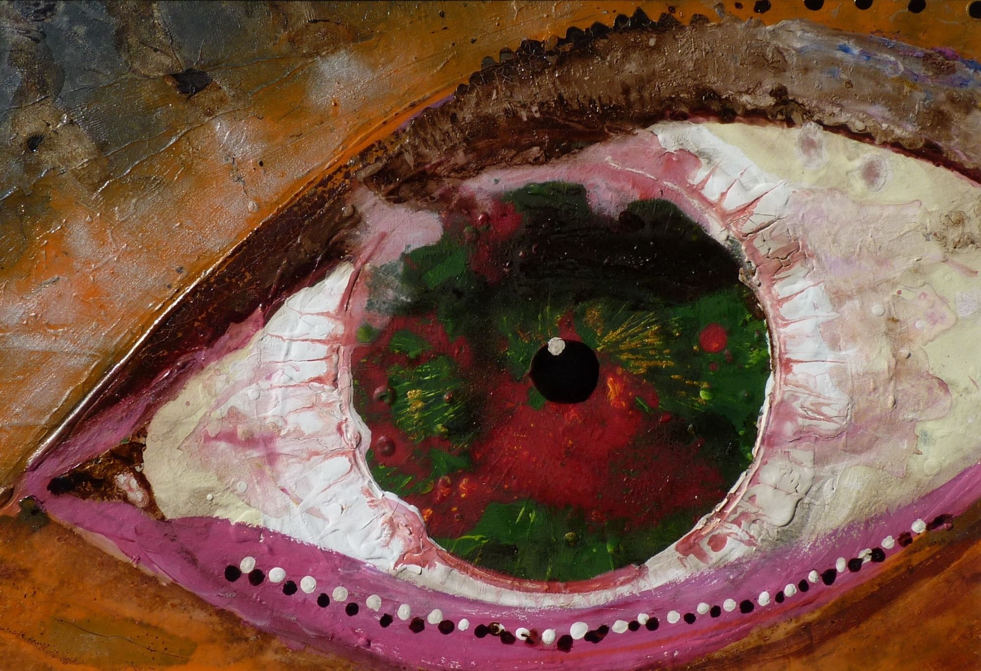 Apparition, disparition, apparition sous-jacente. Quand la matière se retire, s'efface, se condense et laisse apparaître celles qu'elle recouvrait. Remarquer l'inattendu, l'exploiter, le couvrir, le recouvrir, gratter, disperser, souffler, strier. Saisir l'opportunité d'une trace, d'une surface qui parle. De cette apparente irrationalité, extraire du sens telle une paréidolie visuelle et renforcer quelques repères qui balisent la quête de sens du mental : œil, végétal, univers ; voici quelques motifs récurrents qui ponctuent mes toiles.
